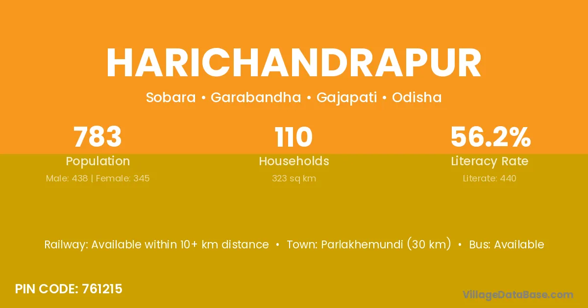 Harichandrapur village has a total population of 783 people, of which 438 are males and 345 are females.