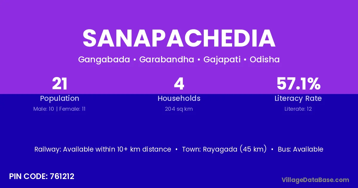 Sanapachedia village is located in the Garabandha Tehsil of the Gajapati district in Odisha .