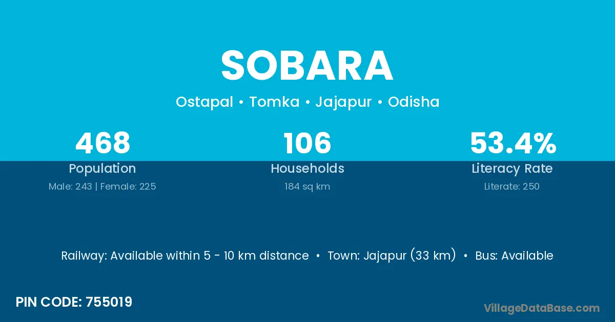 Parlakhemundi (30 km) is the nearest town to Sobara village for major economic activities and is located approximately 30 km away.