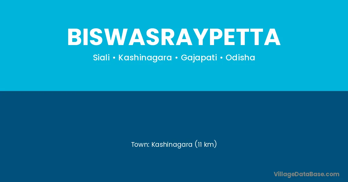 Kashinagara (11 km) is the nearest town to Biswasraypetta village for major economic activities and is located approximately 11 km away.
