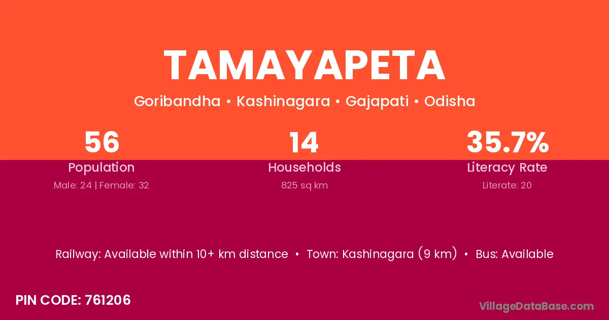 Tamayapeta village has a total population of 56 people, of which 24 are males and 32 are females.