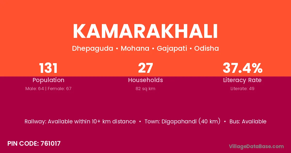 Kamarakhali village has a total population of 131 people, of which 64 are males and 67 are females.