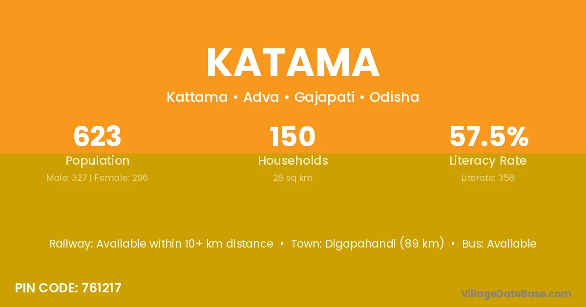 Gunupur (73 km) is the nearest town to Katama village for major economic activities and is located approximately 73 km away.