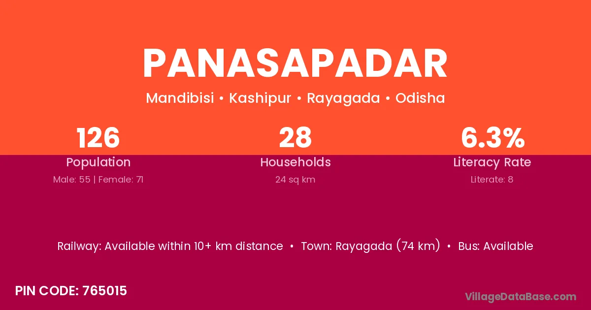Parlakhemundi (82 km) is the nearest town to Panasapadar village for major economic activities and is located approximately 82 km away.