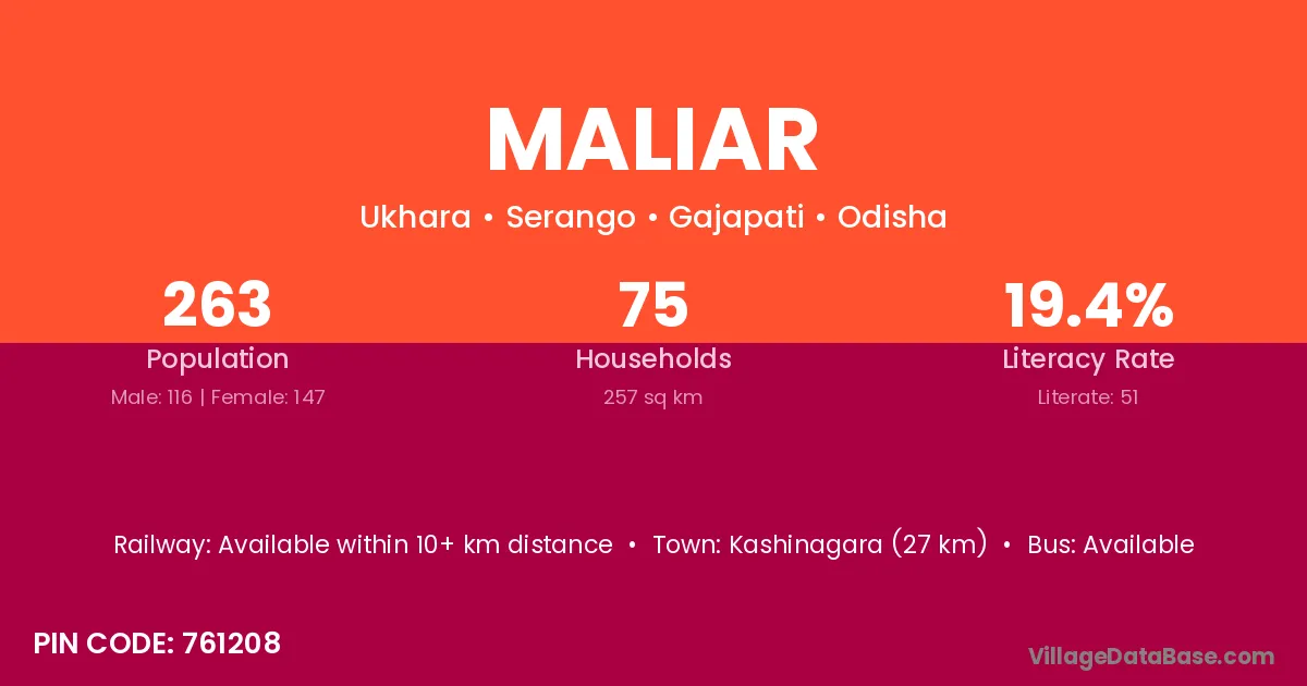 Maliar village is located in the Serango Tehsil of the Gajapati district in Odisha .