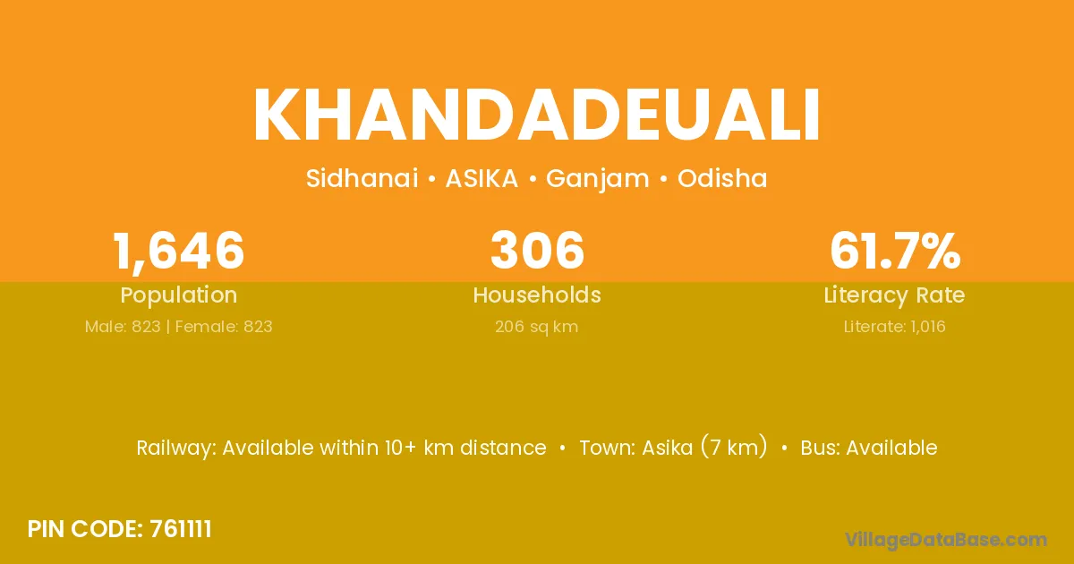 Asika (7 km) is the nearest town to Khandadeuali village for major economic activities and is located approximately 7 km away.