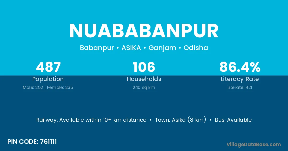 Asika (8 km) is the nearest town to Nuababanpur village for major economic activities and is located approximately 8 km away.