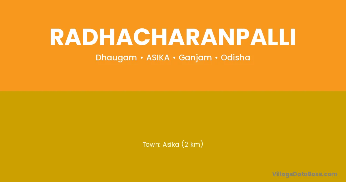 Radhacharanpalli village is located in the ASIKA Tehsil of the Ganjam district in Odisha .