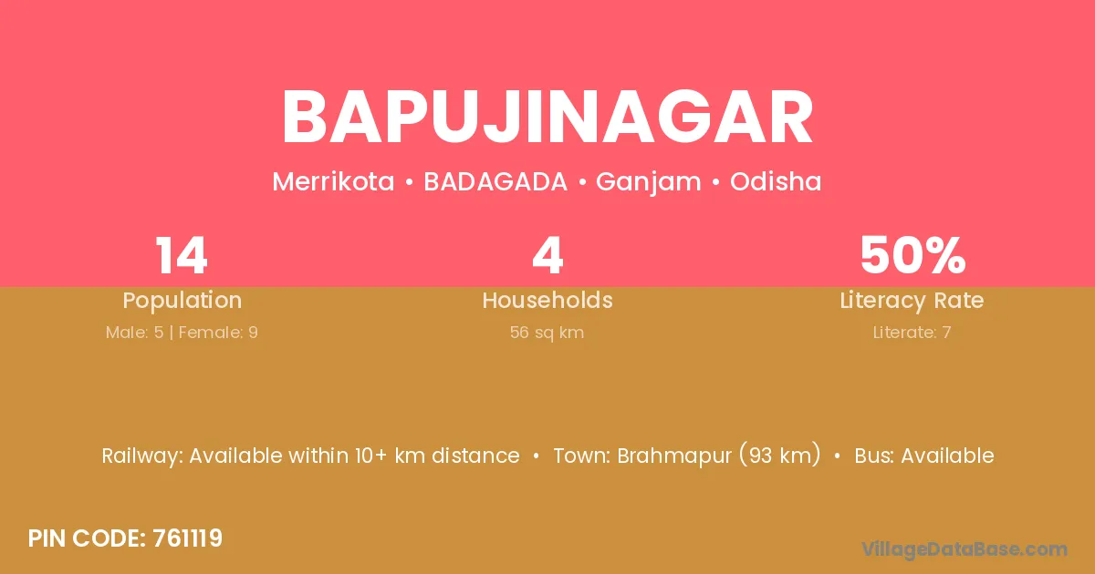 Bapujinagar village has a total population of 14 people, of which 5 are males and 9 are females.