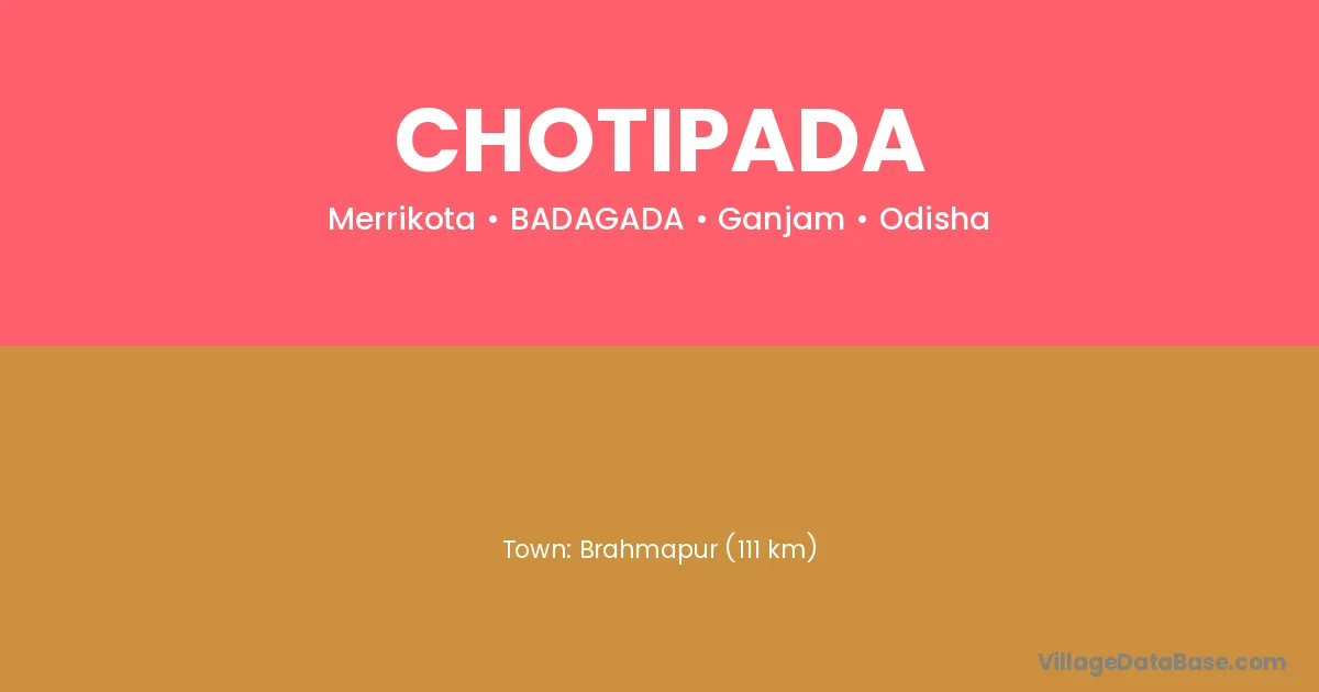 Chotipada village is located in the BADAGADA Tehsil of the Ganjam district in Odisha .
