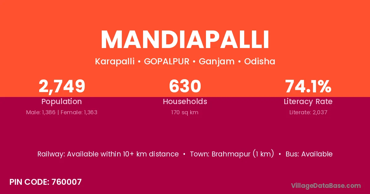 Mandiapalli village is located in the BADAGADA Tehsil of the Ganjam district in Odisha .