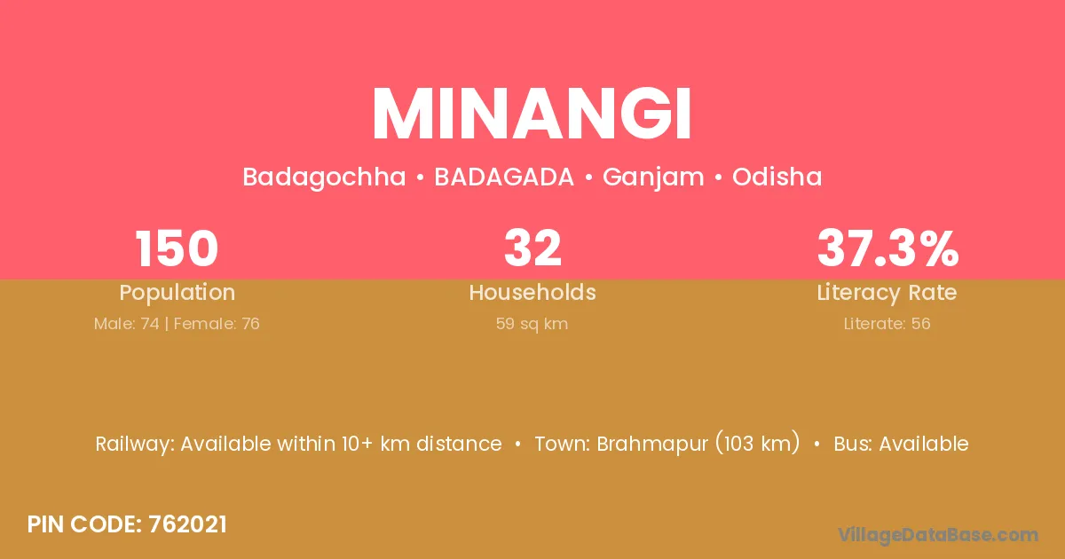 Minangi village is located in the BADAGADA Tehsil of the Ganjam district in Odisha .