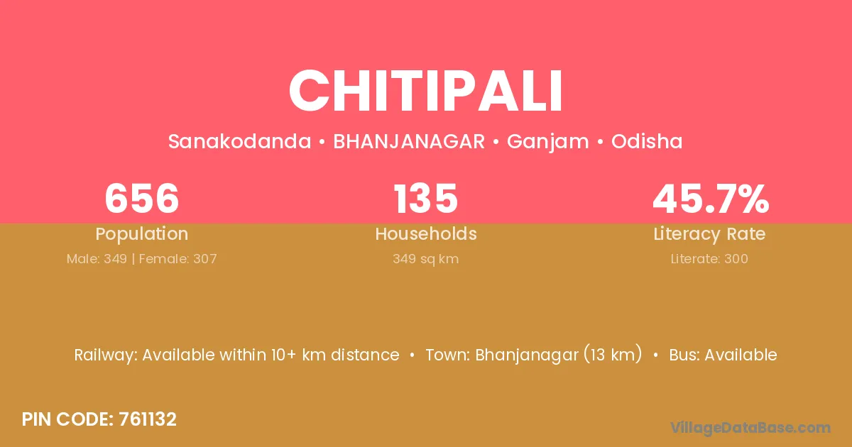 Chitipali village has a total population of 656 people, of which 349 are males and 307 are females.