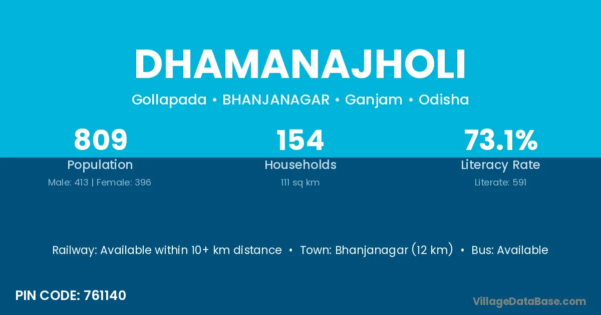 Bhanjanagar (12 km) is the nearest town to Dhamanajholi village for major economic activities and is located approximately 12 km away.