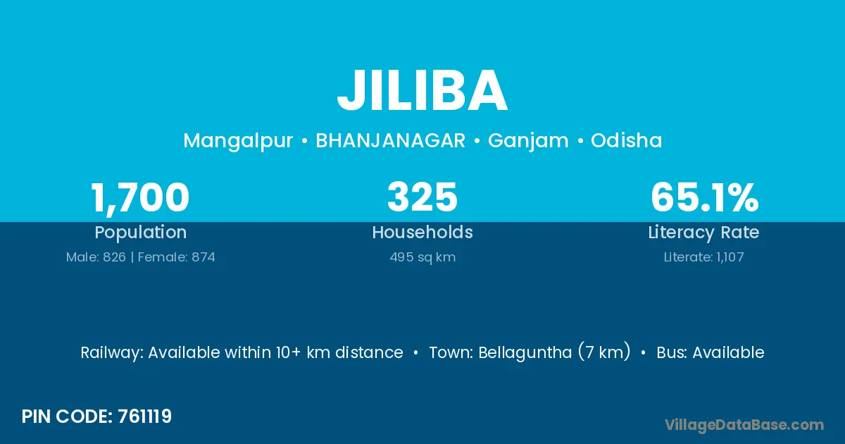Bellaguntha (7 km) is the nearest town to Jiliba village for major economic activities and is located approximately 7 km away.