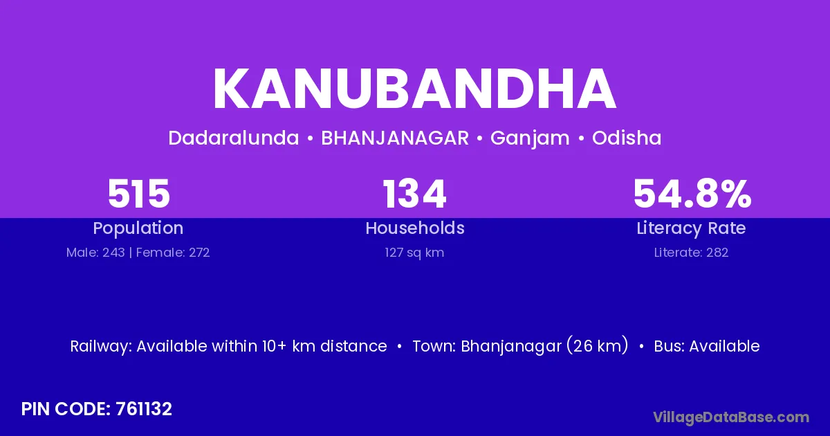 Bhanjanagar (26 km) is the nearest town to Kanubandha village for major economic activities and is located approximately 26 km away.