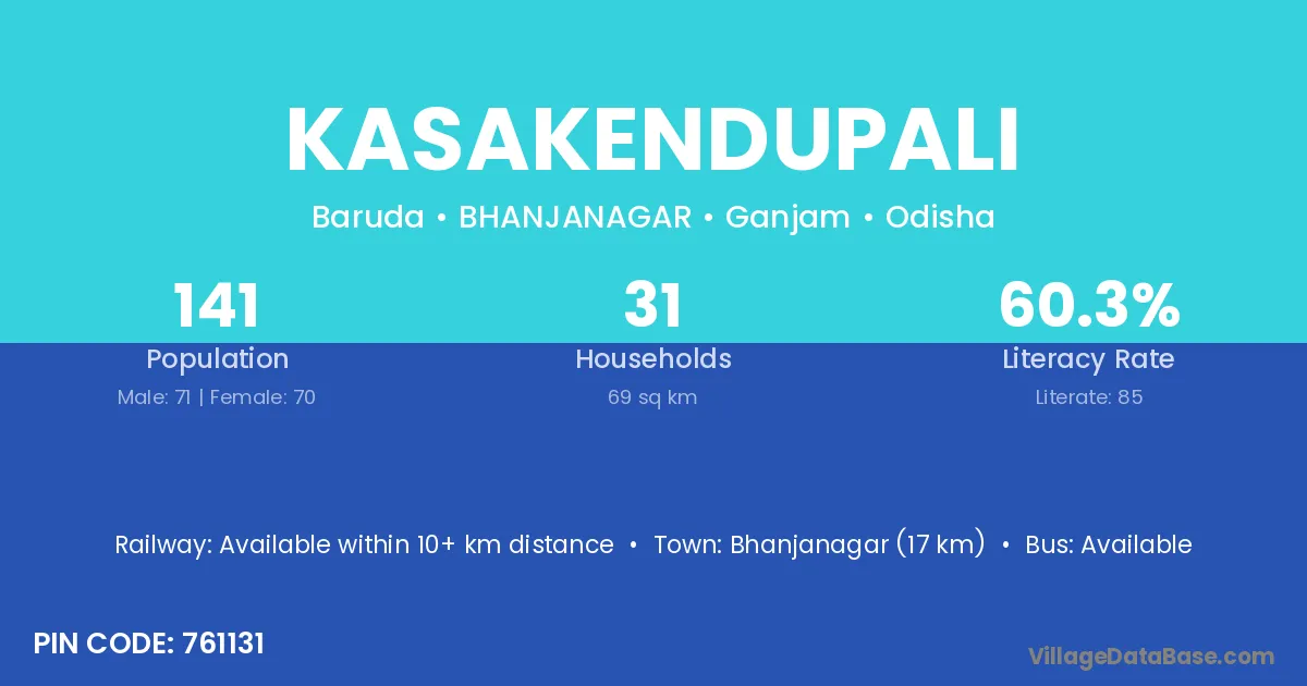 Bhanjanagar (17 km) is the nearest town to Kasakendupali village for major economic activities and is located approximately 17 km away.