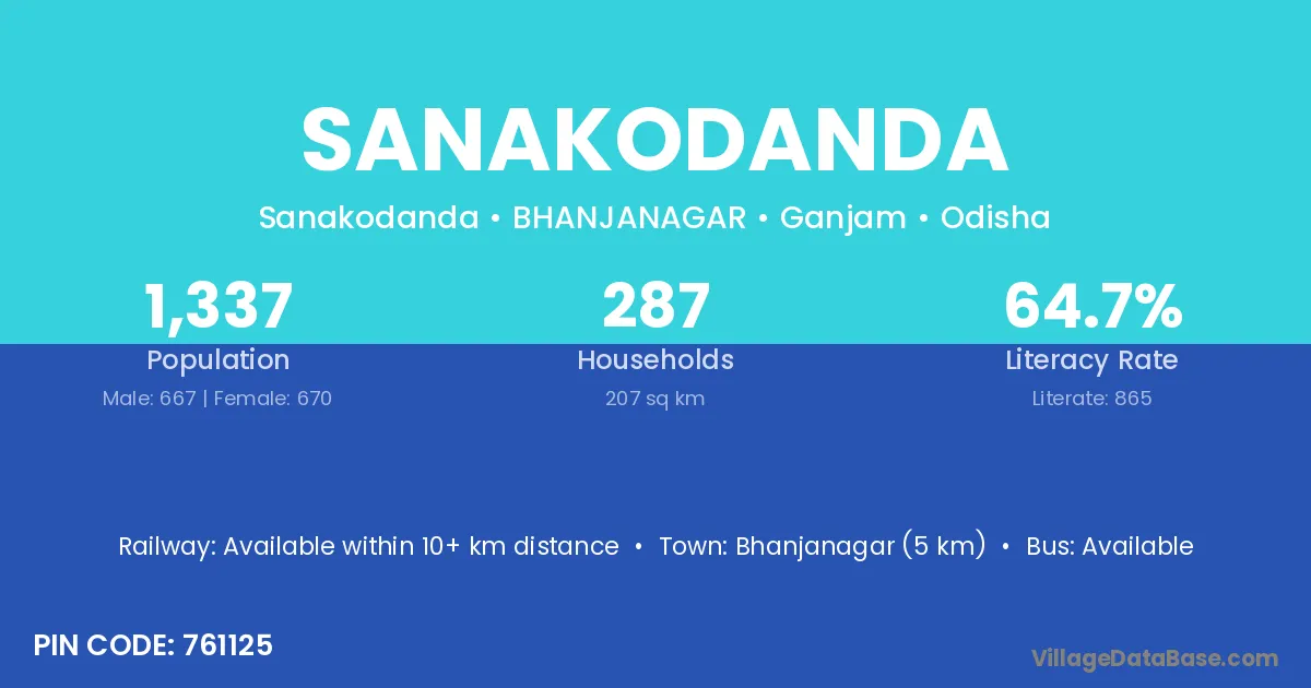 Bhanjanagar (5 km) is the nearest town to Sanakodanda village for major economic activities and is located approximately 5 km away.