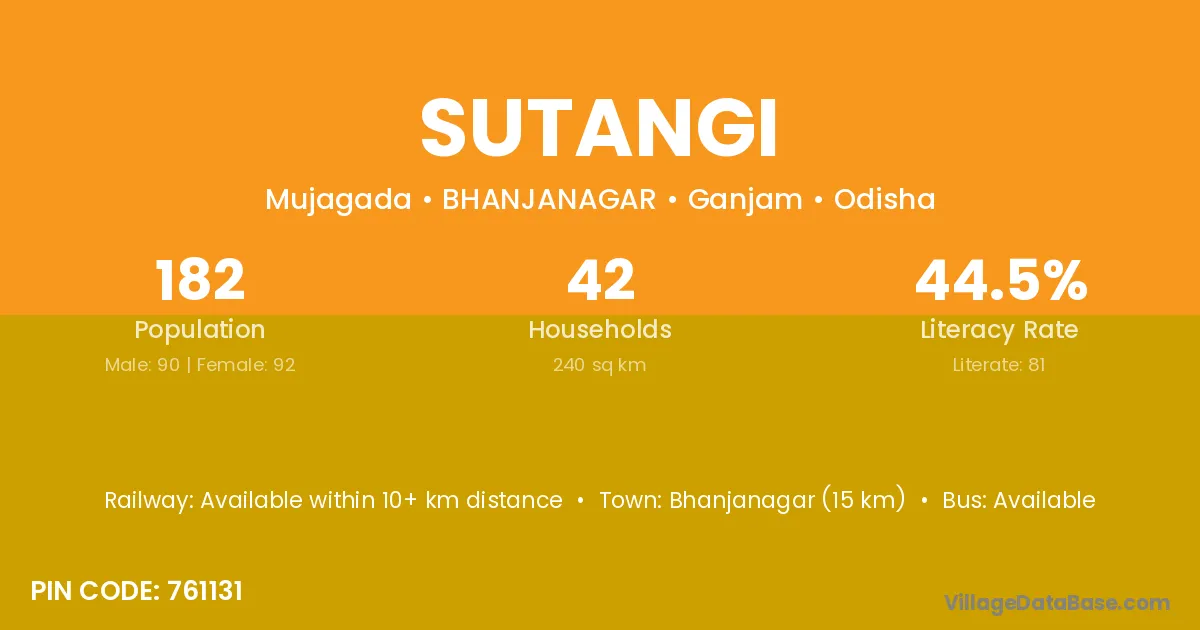 Sutangi village has a total population of 182 people, of which 90 are males and 92 are females.