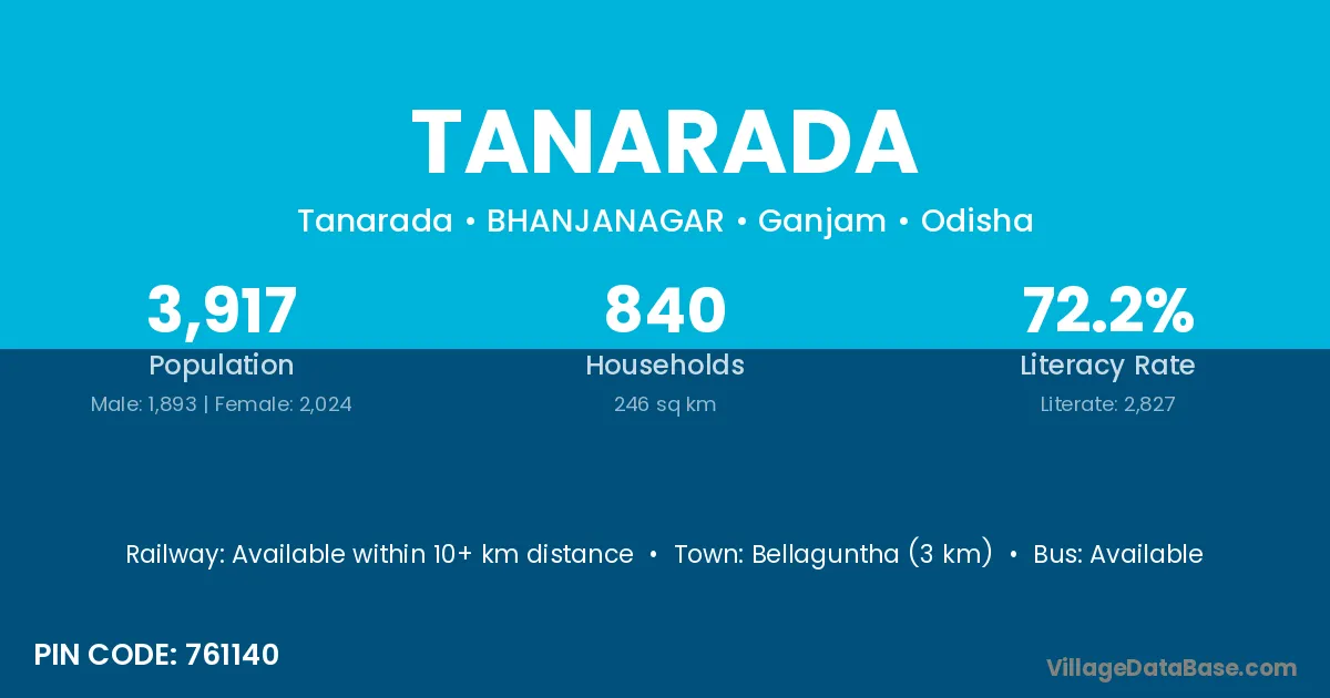 Bellaguntha (3 km) is the nearest town to Tanarada village for major economic activities and is located approximately 3 km away.