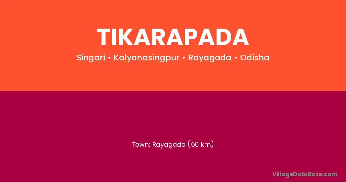 Brahmapur (16 km) is the nearest town to Tikarapada village for major economic activities and is located approximately 16 km away.