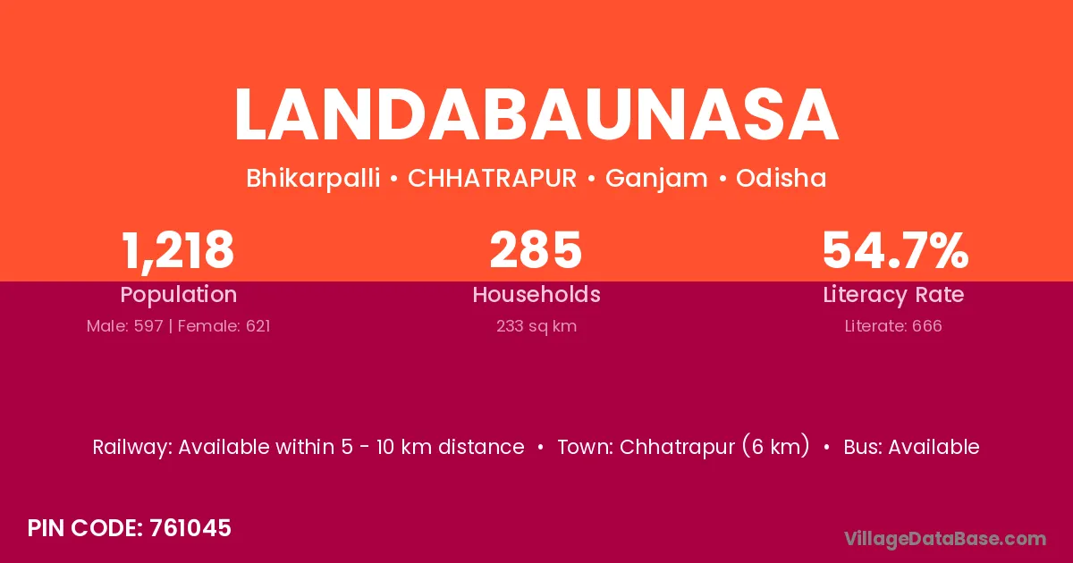 Chhatrapur (6 km) is the nearest town to Landabaunasa village for major economic activities and is located approximately 6 km away.