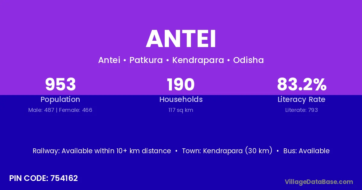Brahmapur (10 km) is the nearest town to Antei village for major economic activities and is located approximately 10 km away.