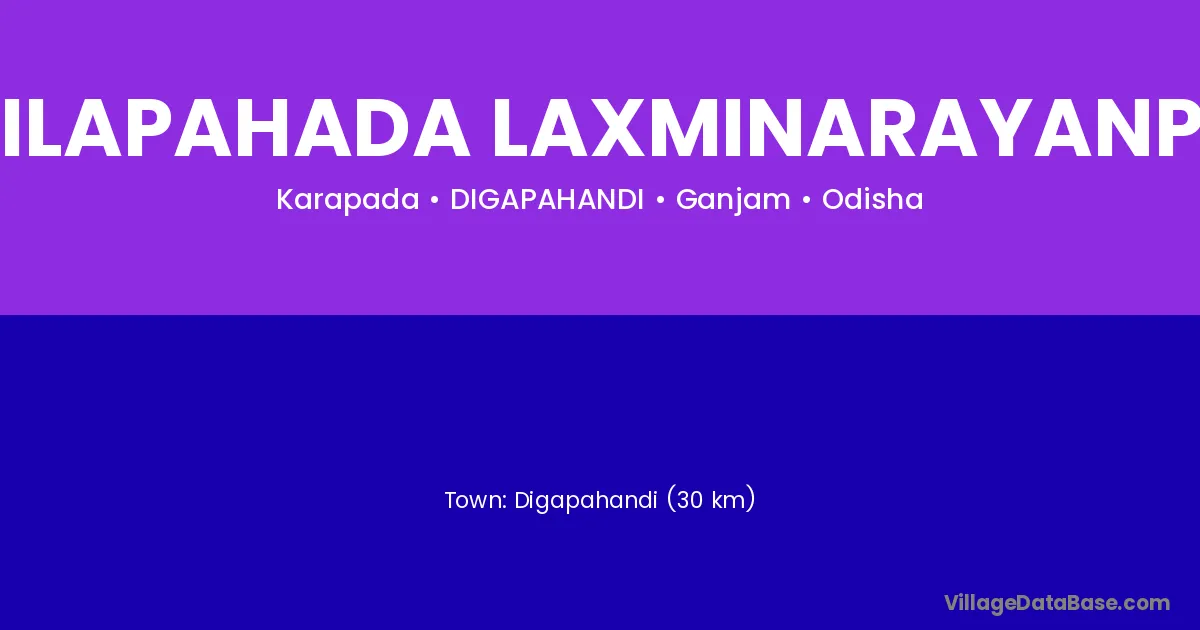 Digapahandi (30 km) is the nearest town to Khilapahada Laxminarayanpur village for major economic activities and is located approximately 30 km away.