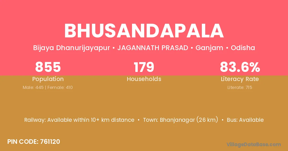 Bhusandapala village has a total population of 855 people, of which 445 are males and 410 are females.