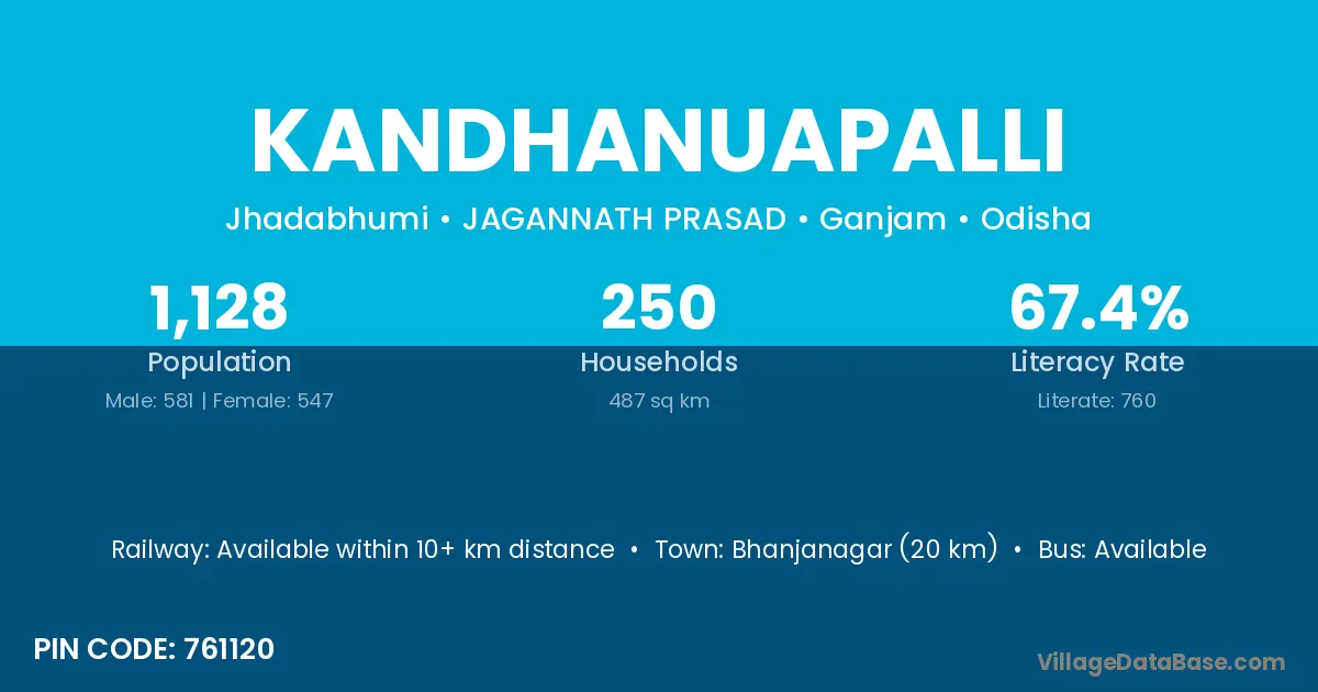Bhanjanagar (20 km) is the nearest town to Kandhanuapalli village for major economic activities and is located approximately 20 km away.