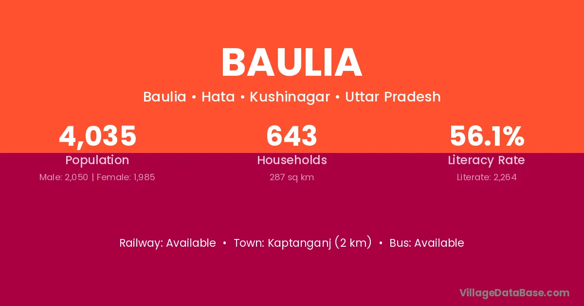 Brahmapur (68 km) is the nearest town to Baulia village for major economic activities and is located approximately 68 km away.