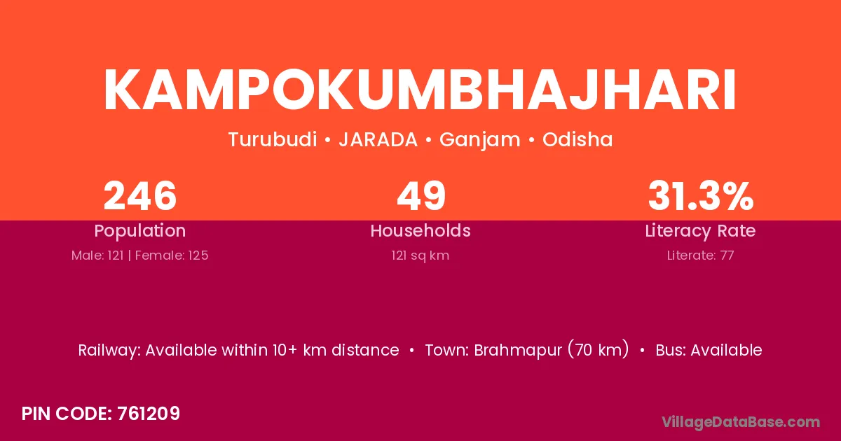 Brahmapur (70 km) is the nearest town to Kampokumbhajhari village for major economic activities and is located approximately 70 km away.