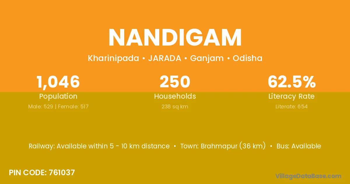 Nandigam village is located in the JARADA Tehsil of the Ganjam district in Odisha .