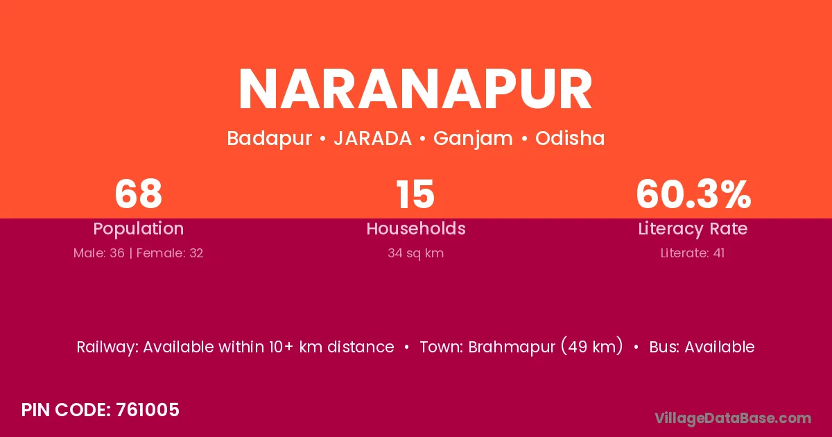 Naranapur village is located in the JARADA Tehsil of the Ganjam district in Odisha .