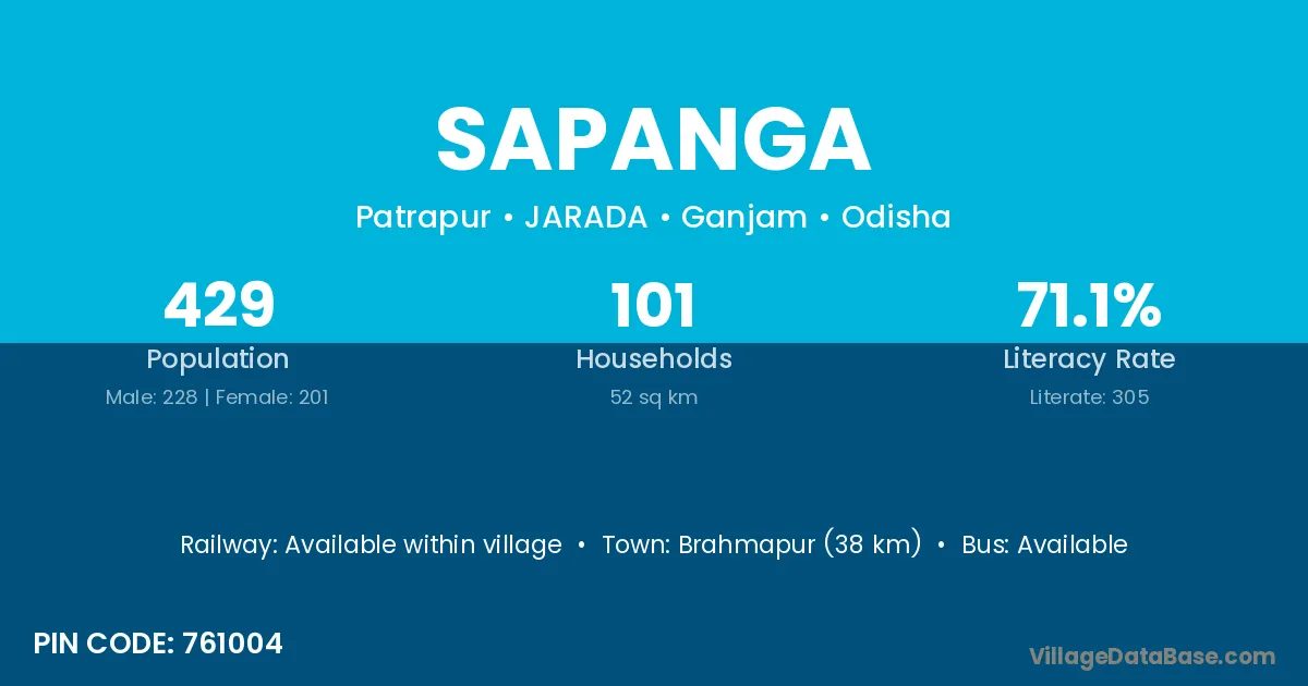Sapanga village has a total population of 429 people, of which 228 are males and 201 are females.