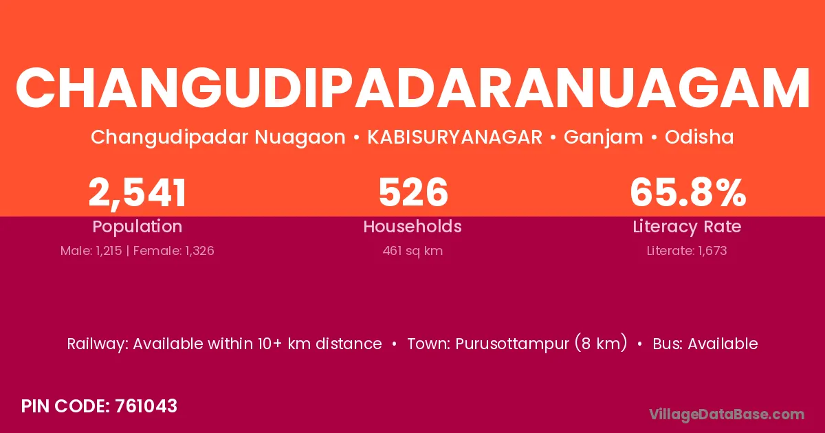 Purusottampur (8 km) is the nearest town to Changudipadaranuagam village for major economic activities and is located approximately 8 km away.