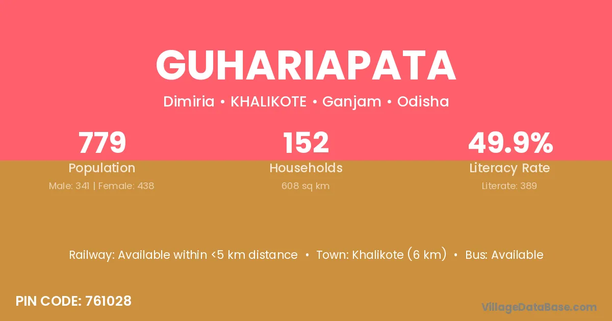 Khalikote (6 km) is the nearest town to Guhariapata village for major economic activities and is located approximately 6 km away.