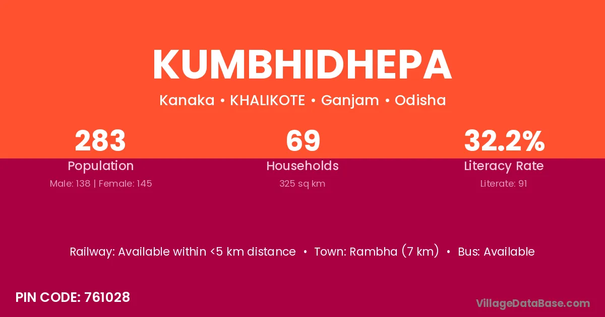 Rambha (7 km) is the nearest town to Kumbhidhepa village for major economic activities and is located approximately 7 km away.