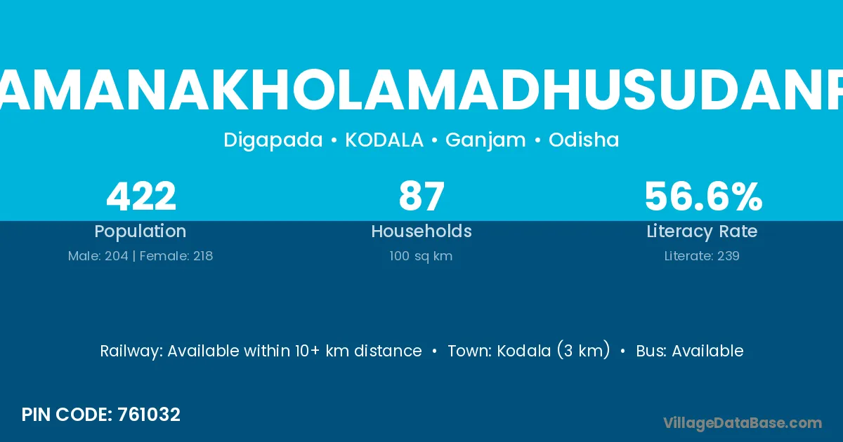 Kodala (3 km) is the nearest town to Dhamanakholamadhusudanpur village for major economic activities and is located approximately 3 km away.