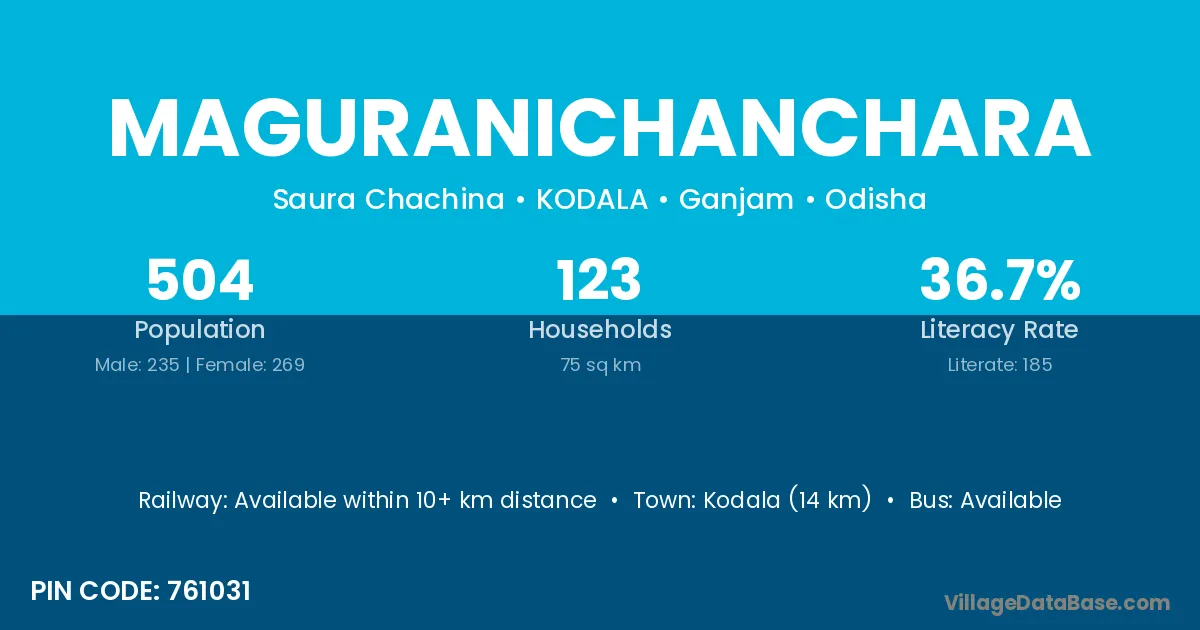 Kodala (14 km) is the nearest town to Maguranichanchara village for major economic activities and is located approximately 14 km away.