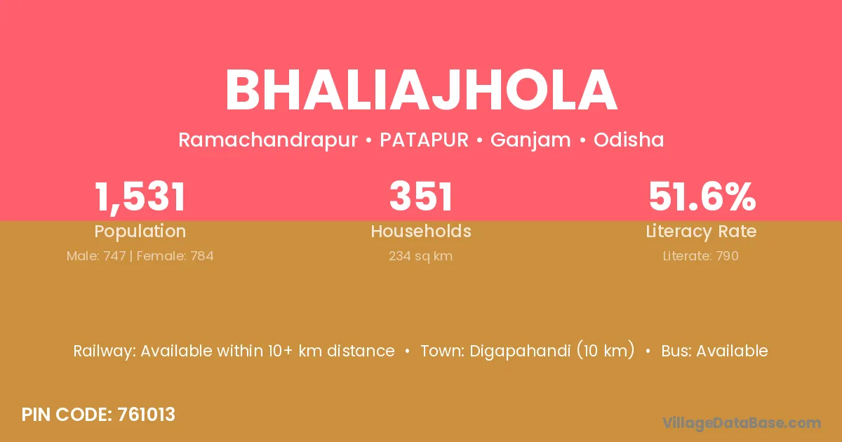 Digapahandi (10 km) is the nearest town to Bhaliajhola village for major economic activities and is located approximately 10 km away.