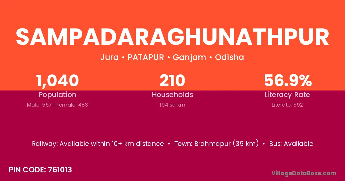 Brahmapur (39 km) is the nearest town to Sampadaraghunathpur village for major economic activities and is located approximately 39 km away.