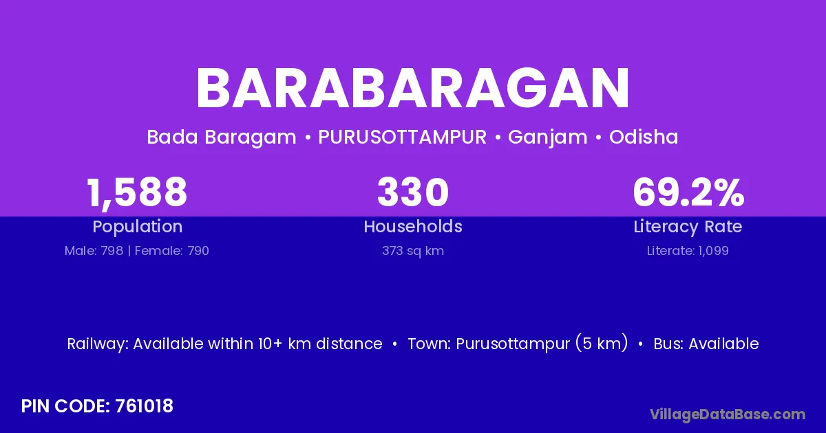 Purusottampur (5 km) is the nearest town to Barabaragan village for major economic activities and is located approximately 5 km away.