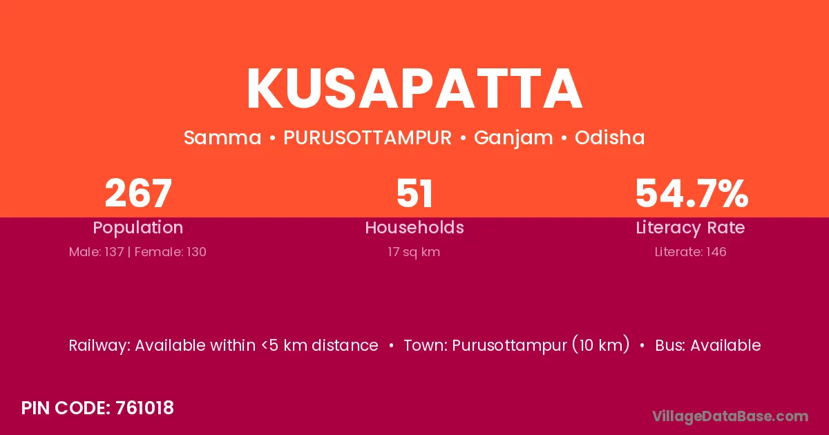 Kusapatta village has a total population of 267 people, of which 137 are males and 130 are females.