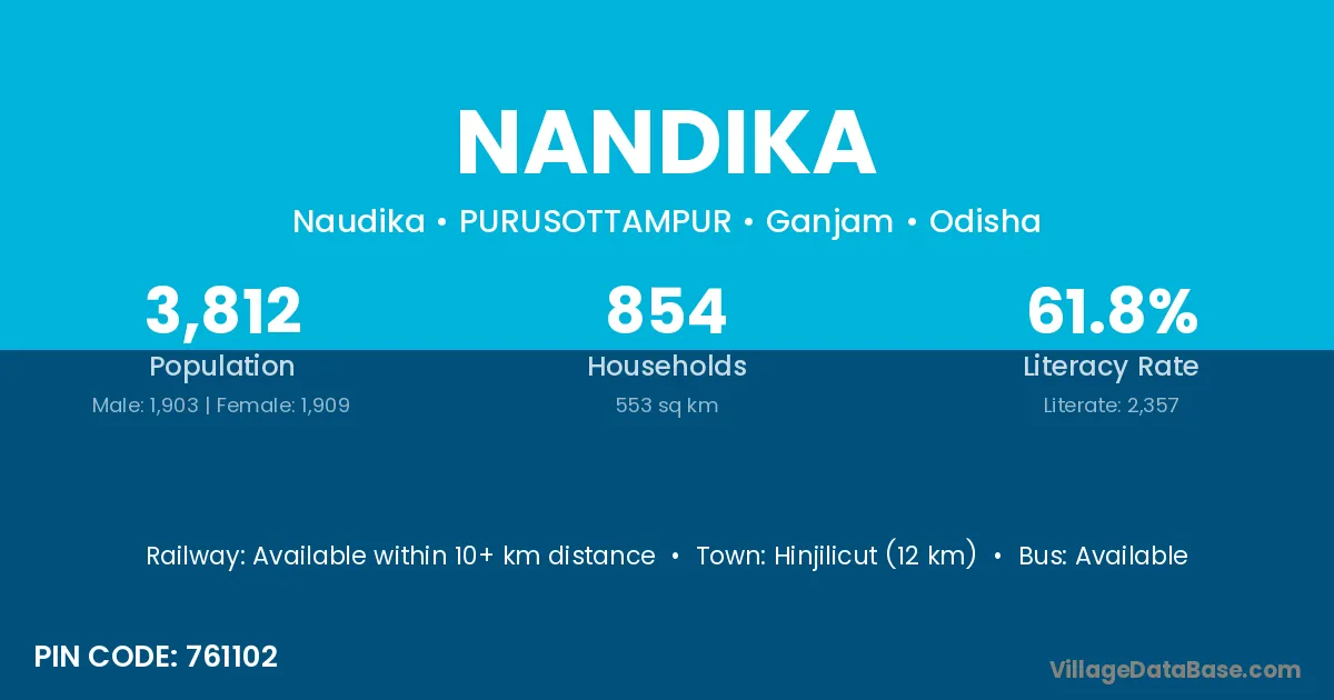 Hinjilicut (12 km) is the nearest town to Nandika village for major economic activities and is located approximately 12 km away.