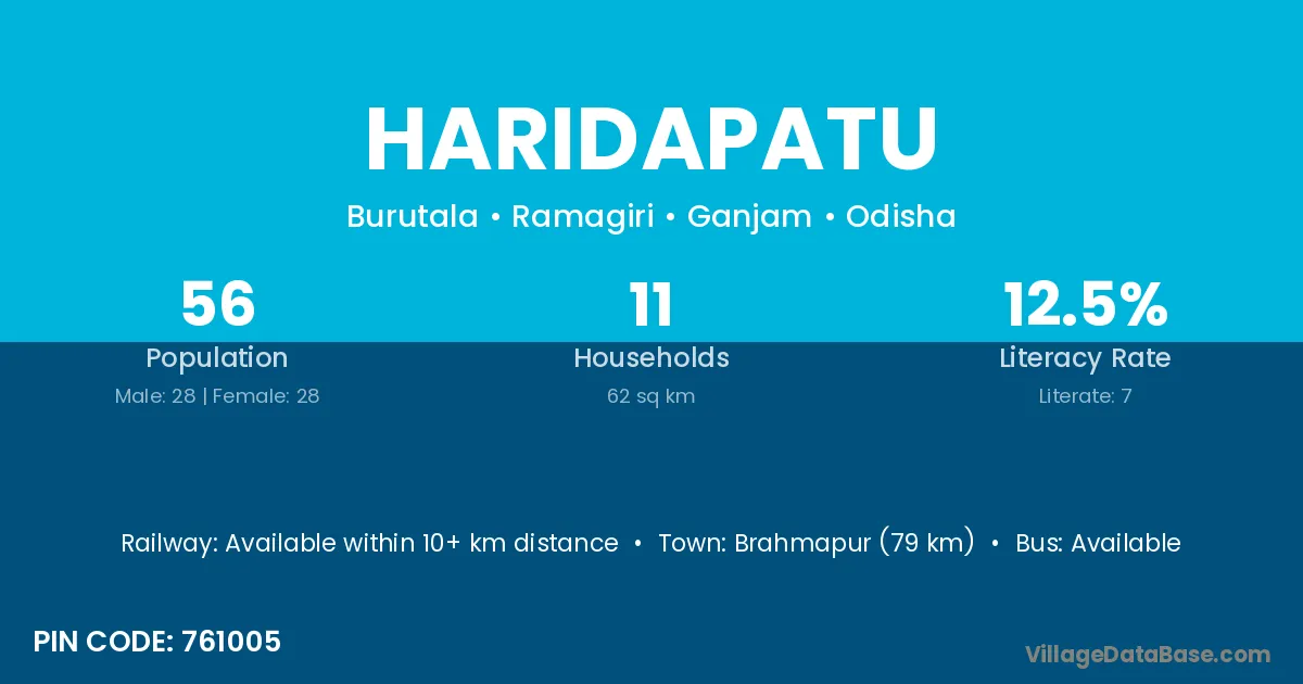 Brahmapur (79 km) is the nearest town to Haridapatu village for major economic activities and is located approximately 79 km away.