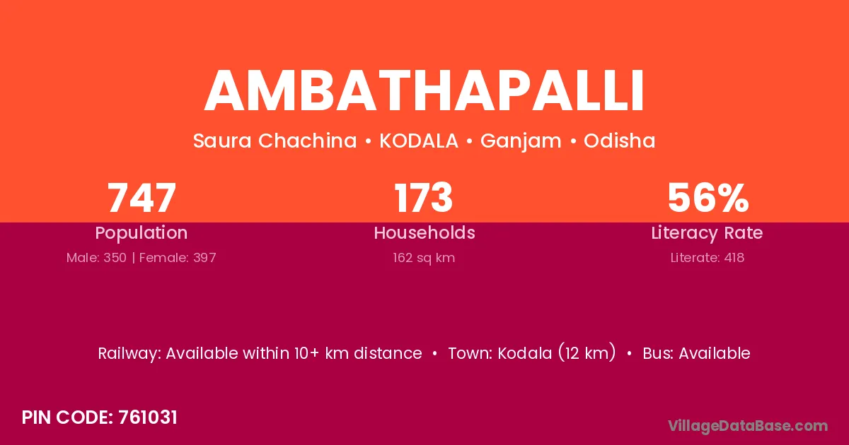Rambha (5 km) is the nearest town to Ambathapalli village for major economic activities and is located approximately 5 km away.