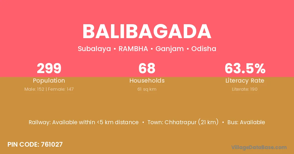 Chhatrapur (21 km) is the nearest town to Balibagada village for major economic activities and is located approximately 21 km away.