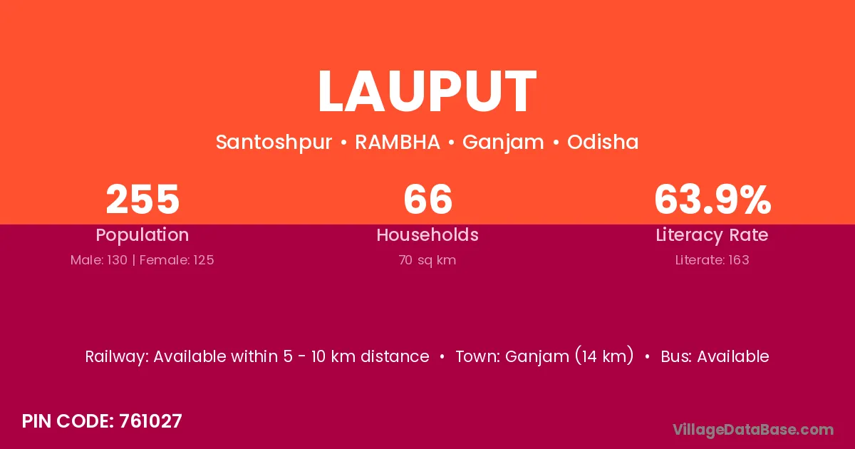 Ganjam (14 km) is the nearest town to Lauput village for major economic activities and is located approximately 14 km away.