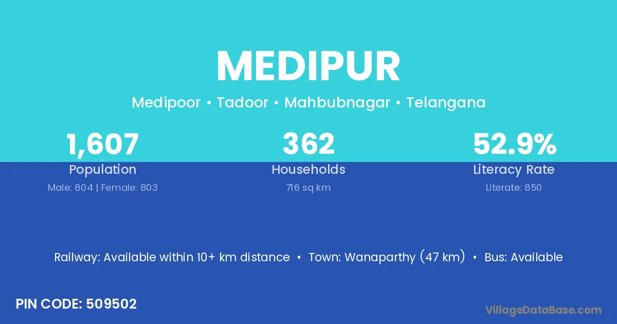 According to Census 2011 information, the village code of Medipur village is 761030.